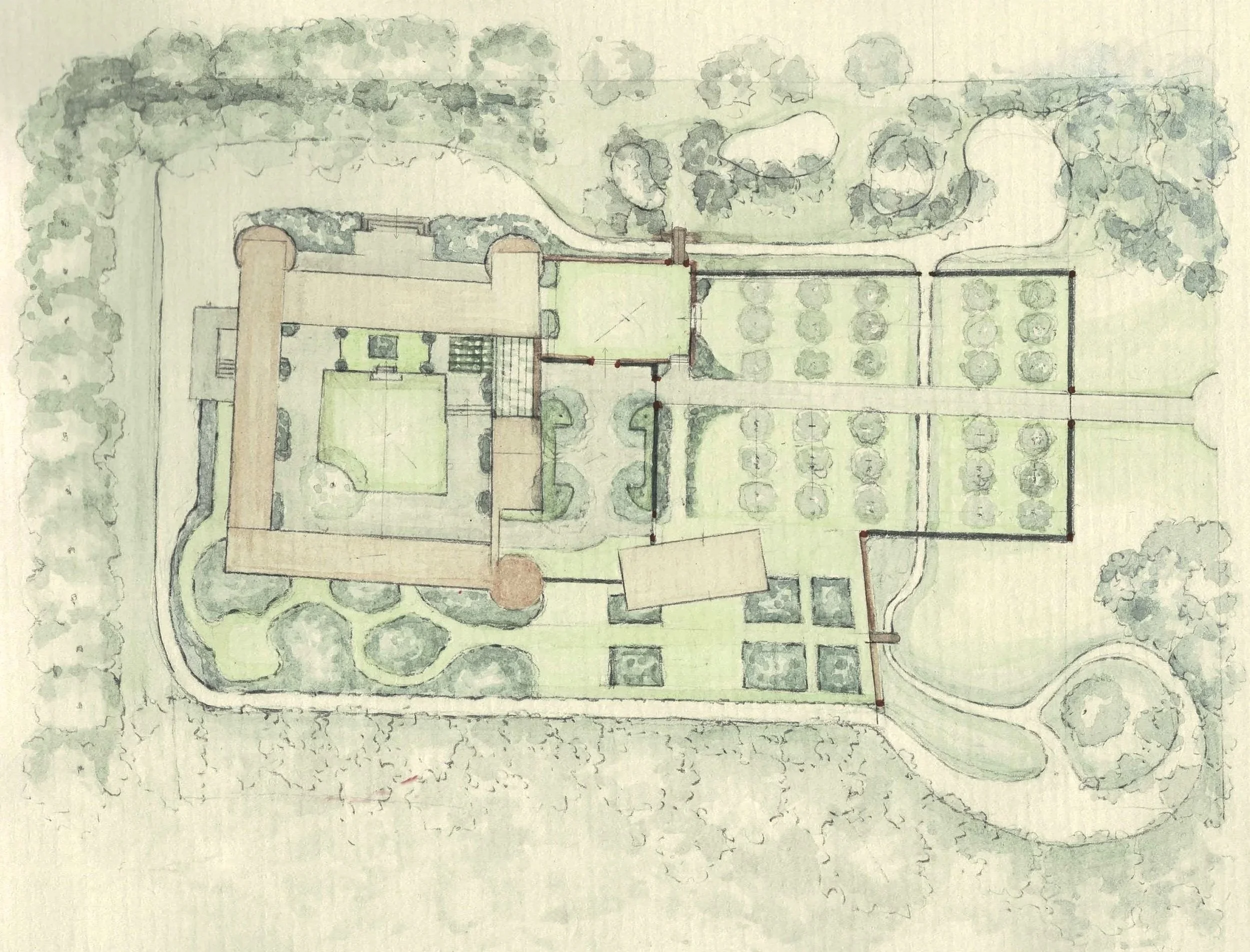 Un dessin et des interventions jardinières adaptées aux moyens engagés: Sans abandonner ses formes ou ses proportions existantes, un parc peut être modifié dans sa fonction et dans ses composants afin de simplifier sa gestion et d’assurer au mieux sa pérennité.